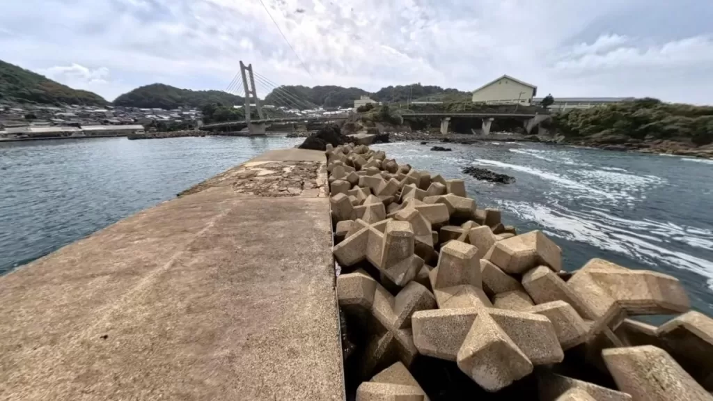 この記事は京都府京丹後市の間人港の外側防波堤の釣りのポイントを水中映像を付けて紹介します。